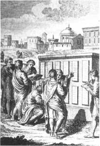 Eventually the plebeians were able to convince the patricians to give them government representation in the newly created office of tribune. Tribunes had had veto power over laws. Rome also established the Twelve Tables in 450 BCE. On these tables laws and procedures were written down for all to read creating a “rule of law.” It was the beginning of codifying Roman laws much like Hammurabi’s codes.